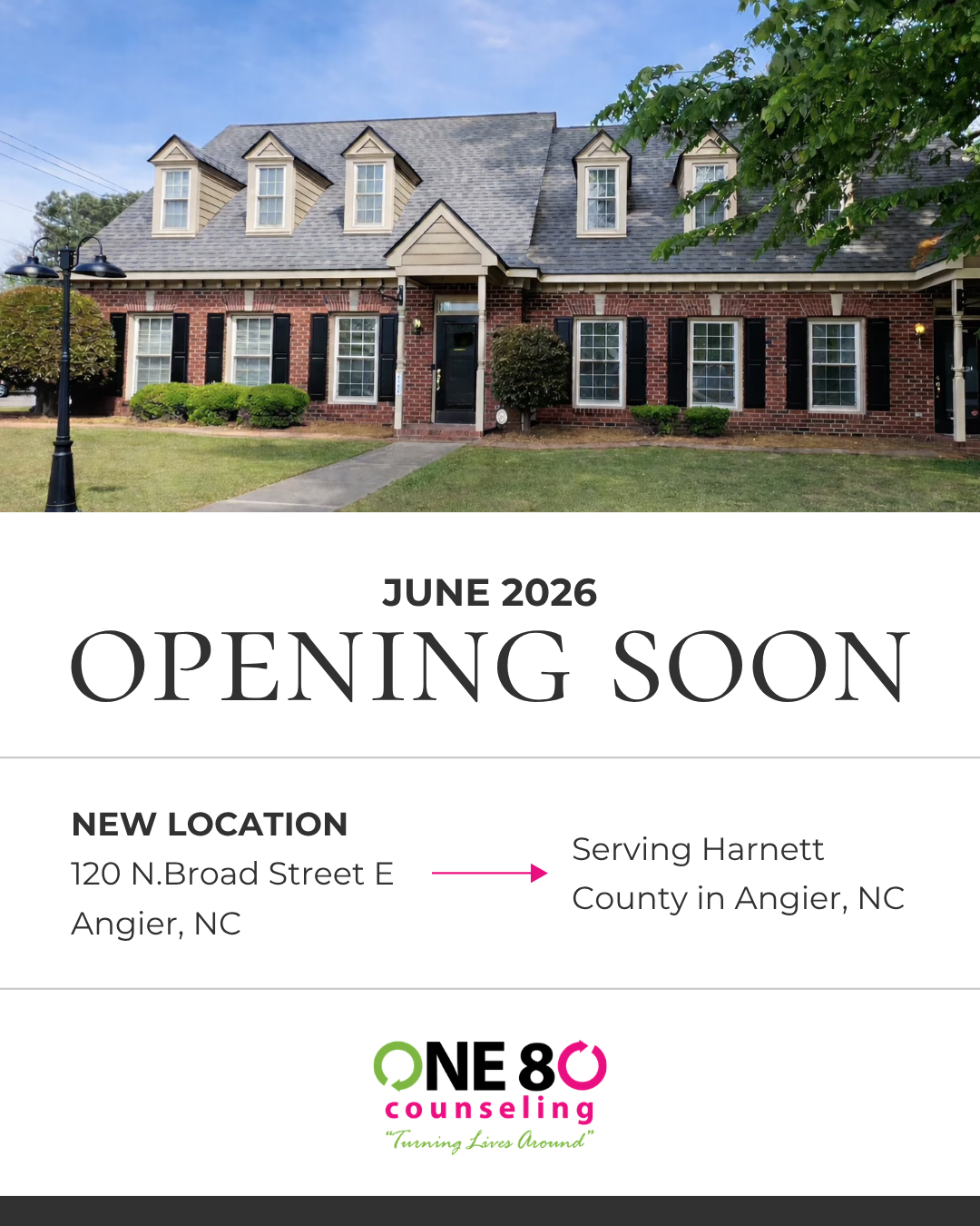One-Eighty Counseling currently serves six locations in North Carolina throughout the Triangle and the Coast.